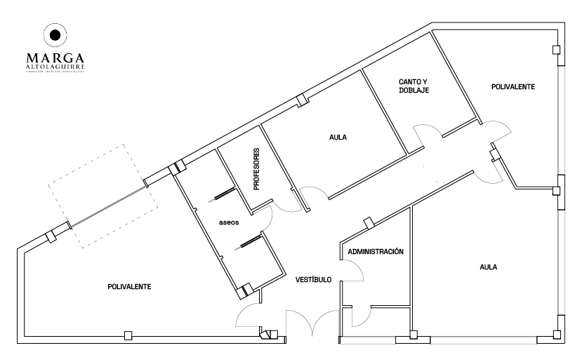 En M.A StudioLab contamos con un amplio espacio, dividido en 5 salas. En cada una de ellas se desarrollan las diferentes clases según se trabaje la voz, el cuerpo, o la interpretación.