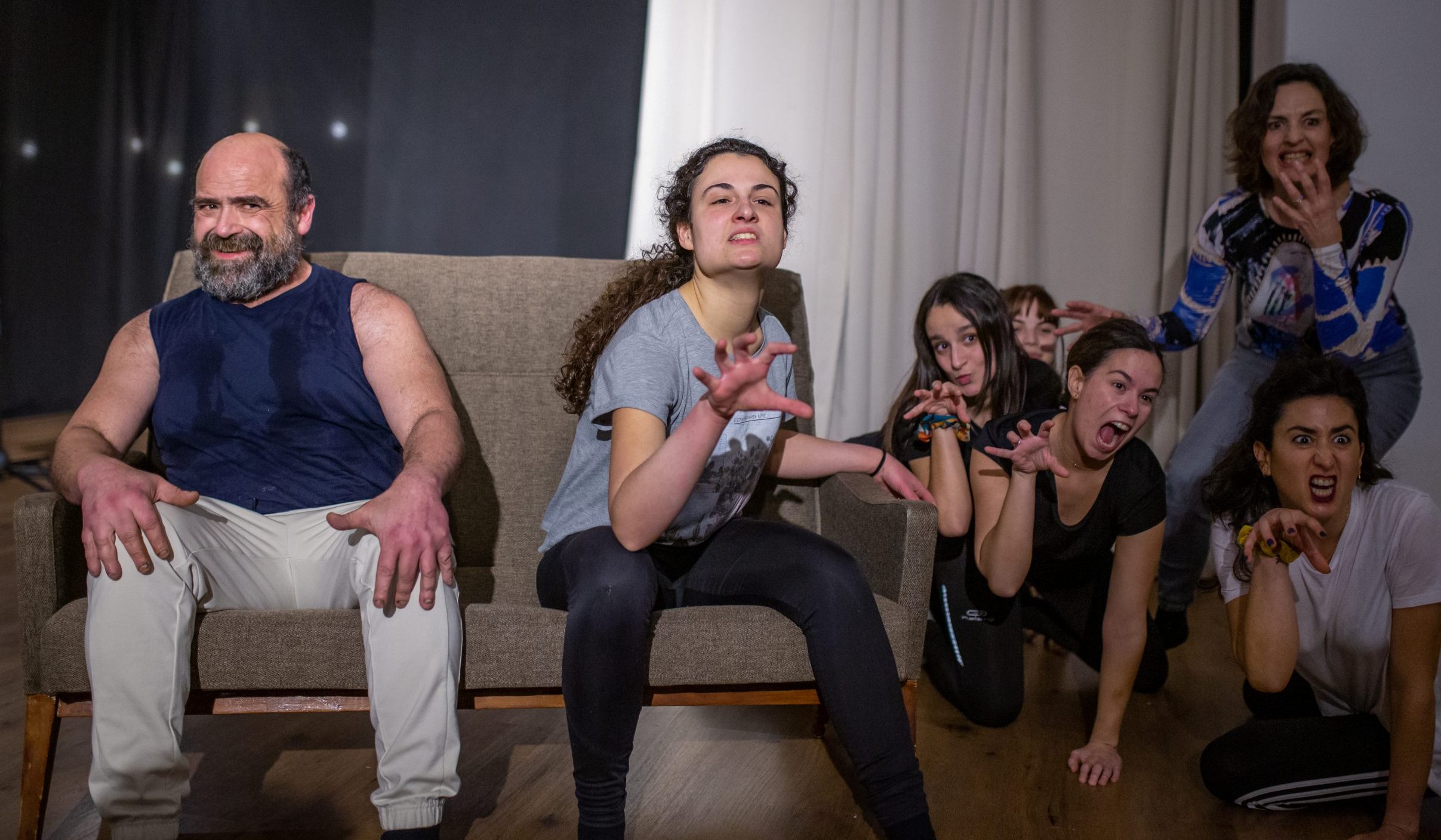 Nuestra productora nace de la misma raíz que nuestra pedagogía: la necesidad de expresar, de compartir, de transformar. Es el lugar donde los proyectos propios, las intuiciones largas, los textos urgentes y los lenguajes nuevos encuentran estructura, soporte y alma escénica. Producimos obras que vienen de dentro. Acompañamos procesos que no caben en los circuitos convencionales. Damos espacio a voces que necesitan decir algo más que un papel o una función. Creamos con nuestras egresadas, con arti tas afines, con personas que llegan con una idea temblorosa y salen con una obra viva.